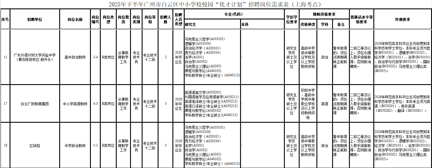 广州市白云区教育局发布最新招聘公告将在北京面向全国公开招聘中小学事业编制教师140名
