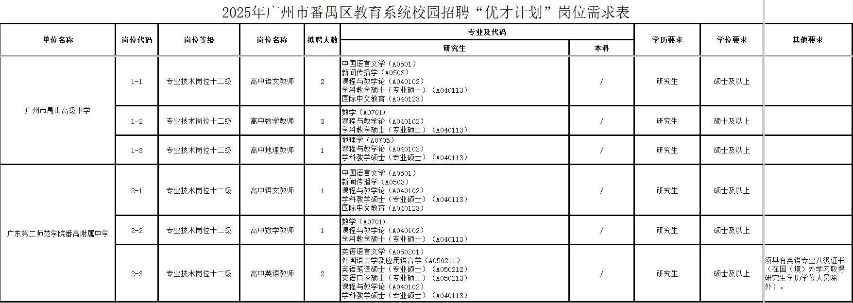 2025年广州市番禺区教育系统校园招聘“优才计划”公告