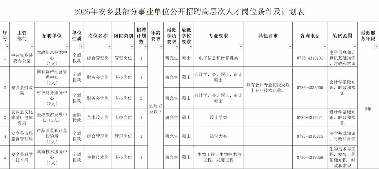 2026年湖南常德安乡县部分事业单位招聘66名高层次人才公告