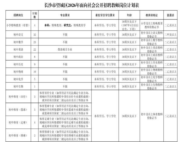 2026年湖南长沙市望城区面向社会公开招聘教师公告