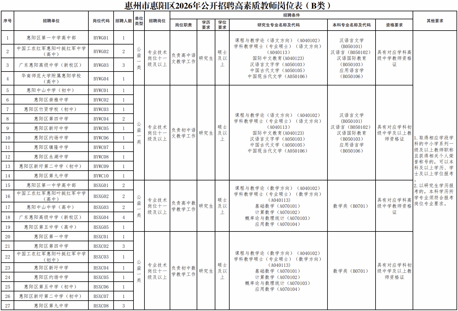 百万英才汇南粤——惠州市惠阳区2026年公开招聘高素质教师公告