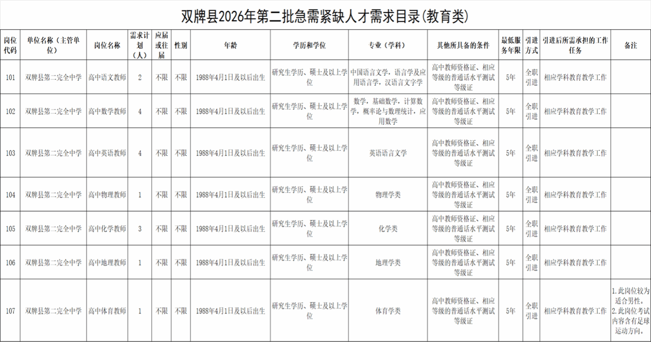 湖南省永州市双牌县2026年引进急需紧缺人才公告(第二批)