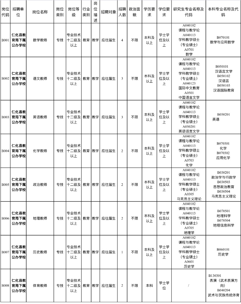 “百万英才汇南粤”仁化县2026年公开招聘教师公告